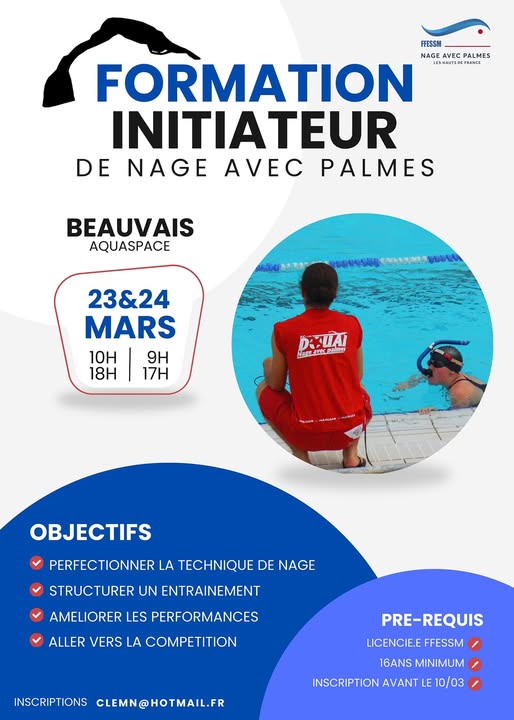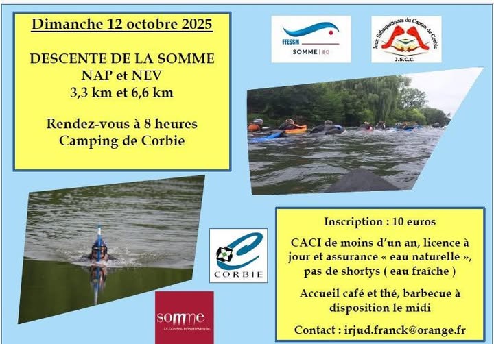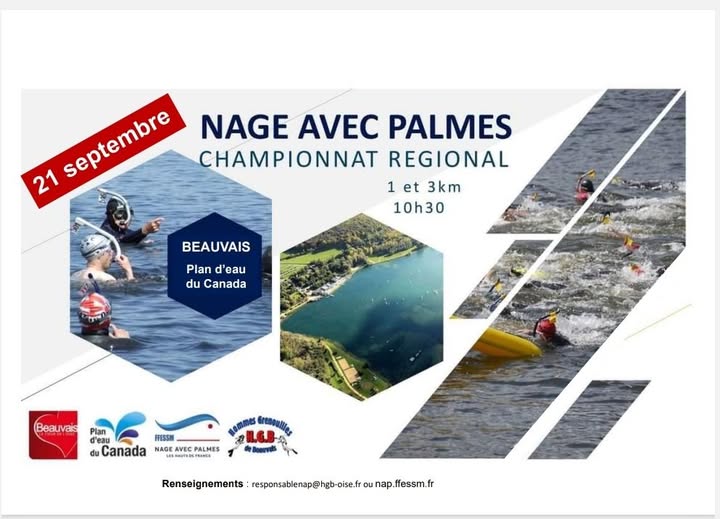 Les distances sont derrière l’affiche. Pour participer le CACI doit faire mention; Nage avec Palmes en compétition